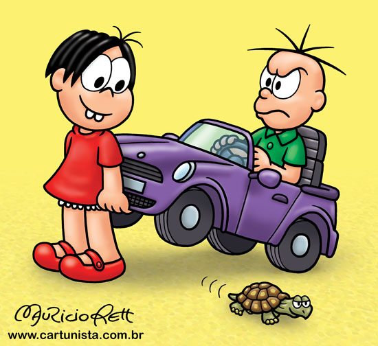O cartum acima é uma releitura da capa de Mônica nº 1 da Editora Abril: